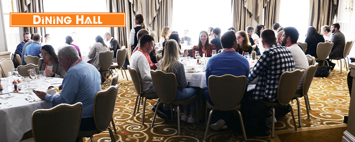 The Dining Hall is where food and beverage catering is provided. Use these scheduled networking breaks to get to know the people you connect with via social networks—up close and personal.